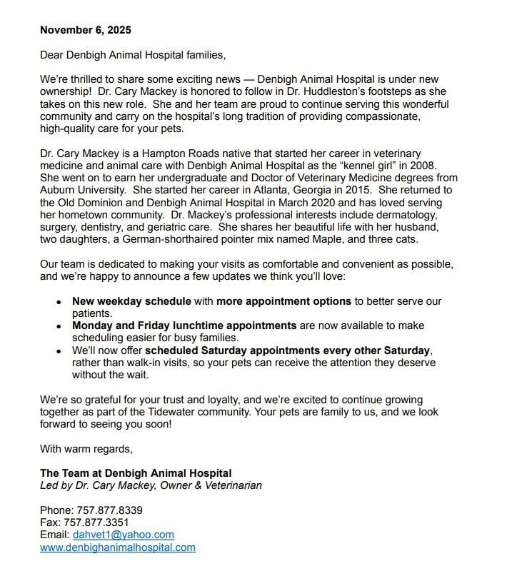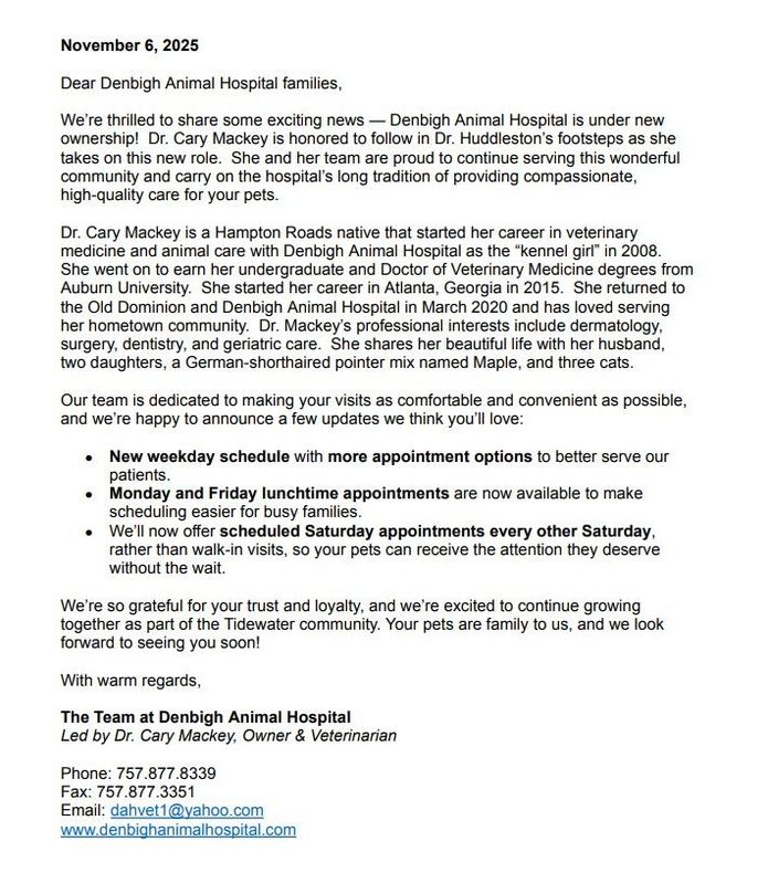 Welcome to Denbigh Animal Hospital!